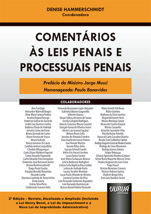 Comentários às Leis Penais e Processuais Penais - Incluindo a Lei Henry Borel, a Lei do Impeachment e a Nova Lei de Improbidade Administrativa - obra coletiva, sob a coordenação da Drª Denise Hammerschmidt